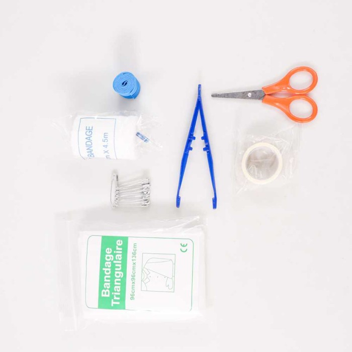Kelengkapan Produk Rincian yang Anda dapatkan untuk pembelian produk ini: 1 x Gulungan pita perekat kain bukan tenunan 5 x Plester Luka 1 x Perban Segitiga 1 x gulungan perban elastis PBT 1 - 5cm x 450 cm 10 x Peniti ukuran 3 cm 2 x Alkohol Pad 2 x Bantalan Luka 2 x Povidone-Lodine Prep Pad 1 x Pinset 1 x Gunting 1 x Perban 1 x Tas Penyimpanan P3K