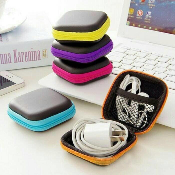 Pouch Persegi Penyimpanan Headset Kotak Organizer Tempat Headset Earphone Pouch Serbaguna - Random