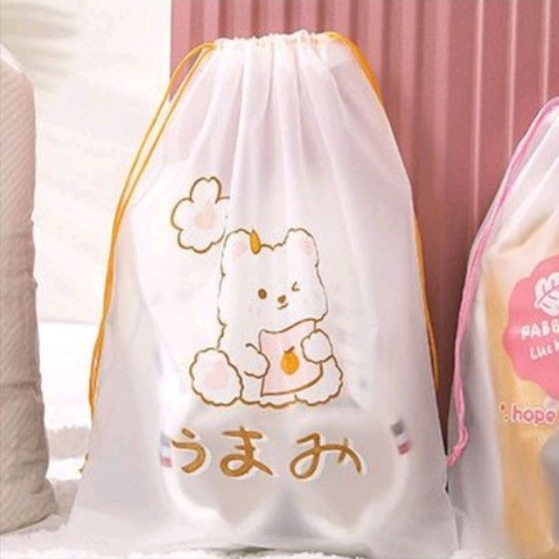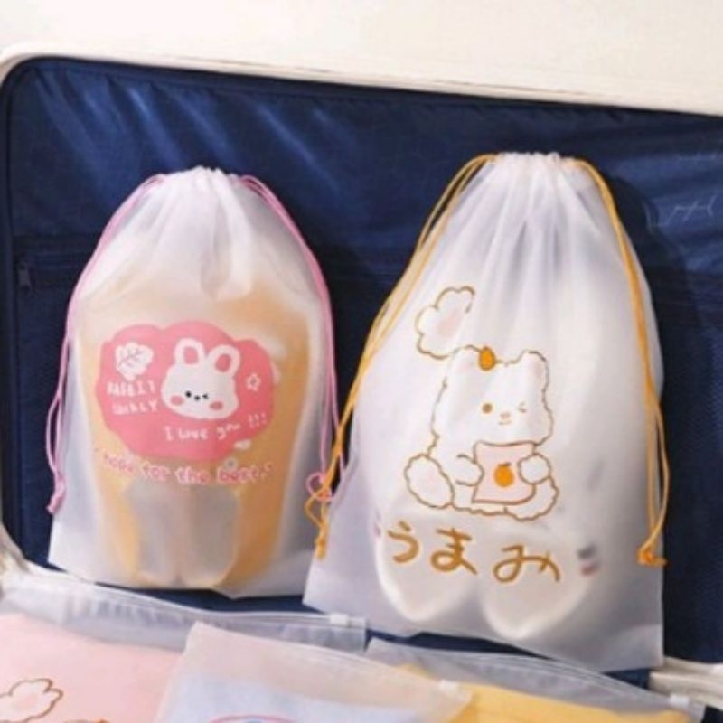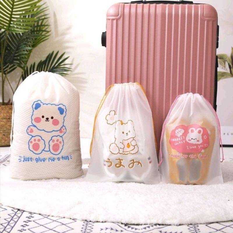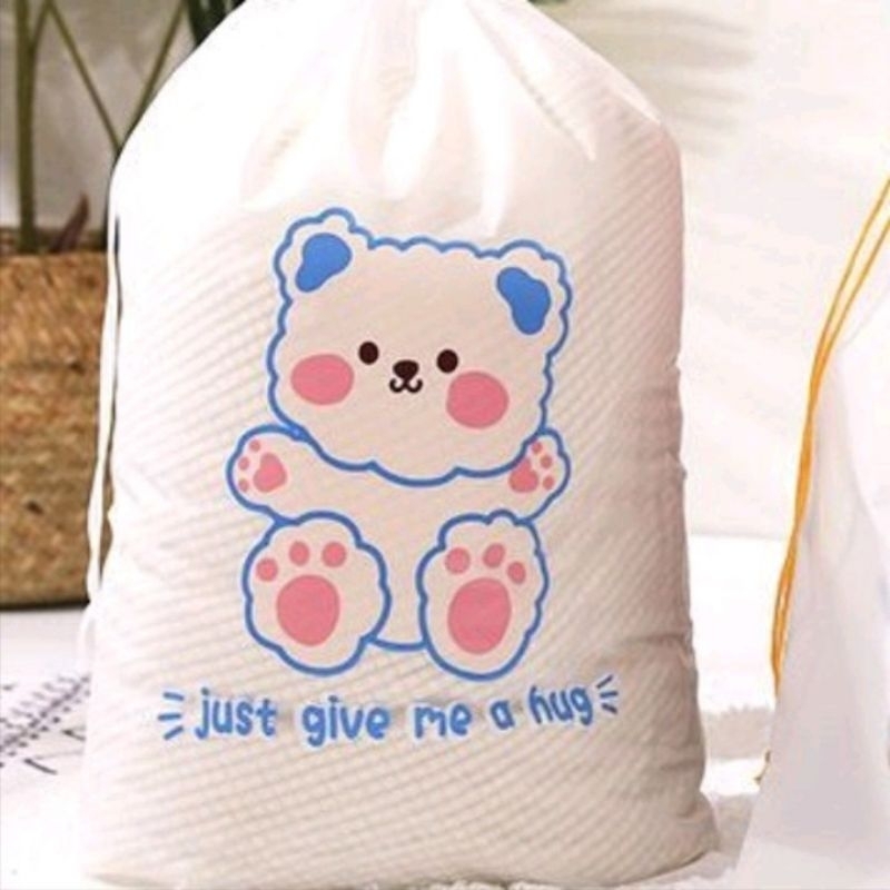 Detail pouch serut dan ziplock bear series size besar travel organizer zipper pouch