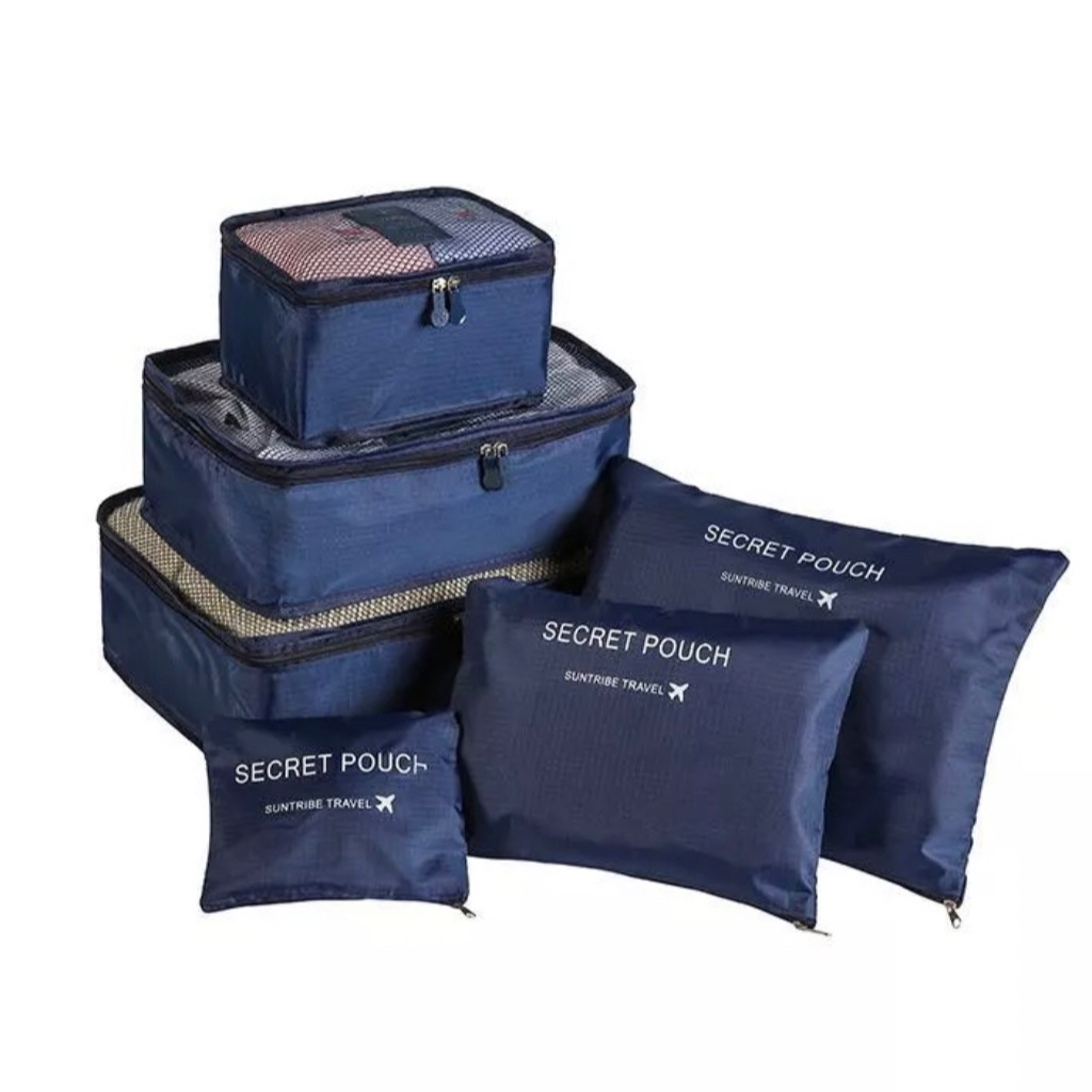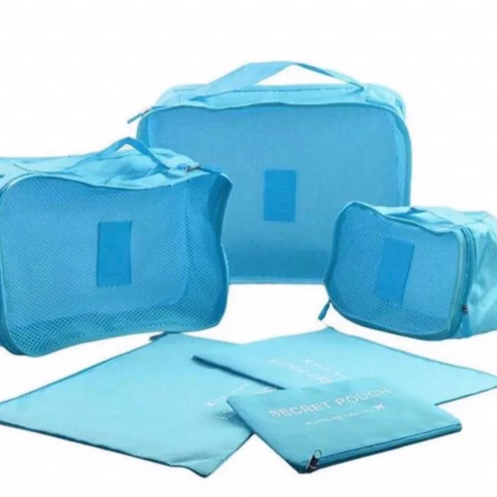 Travel bag 6 in 1 Travel Pouch Bag ini adalah tas organizer yang terdiri dari 6 tas berpergian atau berliburan yang terdiri dari 6 ukuran yang berbeda beda untuk kebutuhan yang berbeda beda Bahan Nylon dan Jaring Ribstock