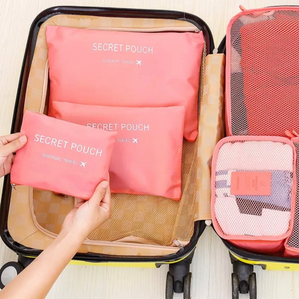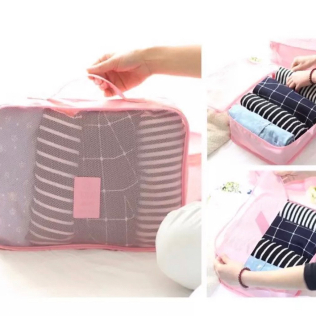 pouch / tas travel organizer set 6 in 1 traveller organizer tas set penyimpanan baju travel containing bag travel