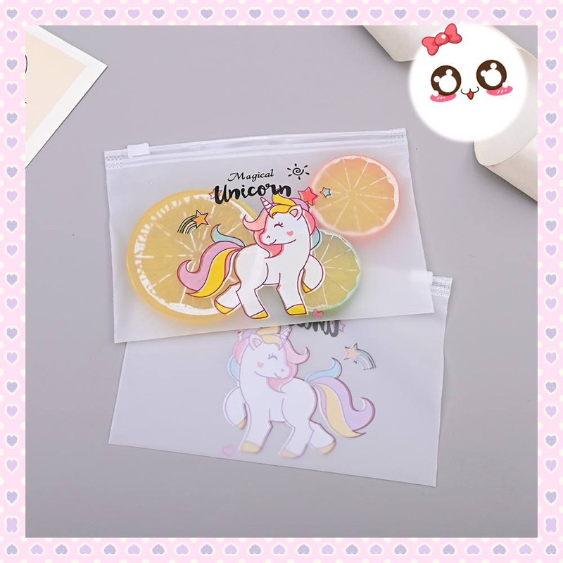 Detail Pouch Unicorn Zipper Kantong Transparan