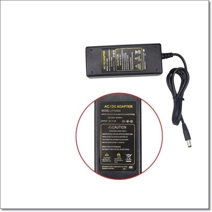Detail Power Adaptor 12V 5A 60W EU Adapter Plug untuk LED Strip CCTV AC DC