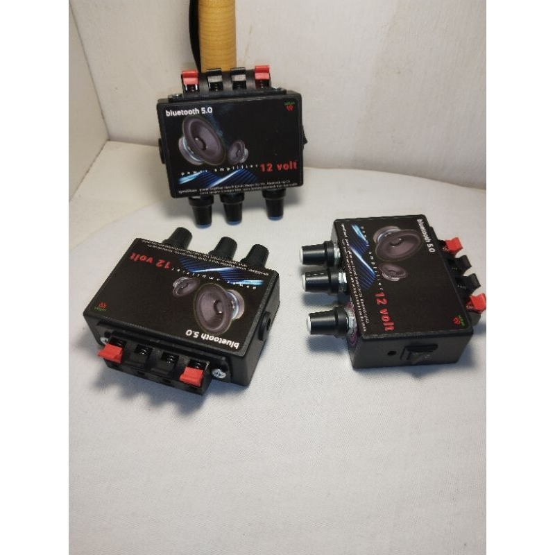 spesifikasi : - 12 volt - pakai adaptor 12 V minimal 2 A asli - input bluetooth - class D setereo 2 chanel - 3 potensio (bass, treble, volume) - untuk speaker 8 inc ~ 10 inc rekomendasi sangat pas untuk hasil suara yg bagus. - ke listrik bisa, ke aki juga bisa dengan tegangan sama.