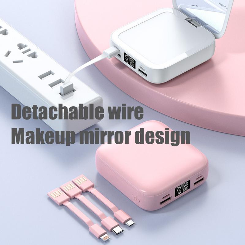 Handphone & Aksesoris > Powerbank & Baterai > Powerbank > Power Bank 20000mAh Powerbank Fast Charging with 3 Kabel Data Real Capacity Mini Dual USB Portable Make-up Mirror