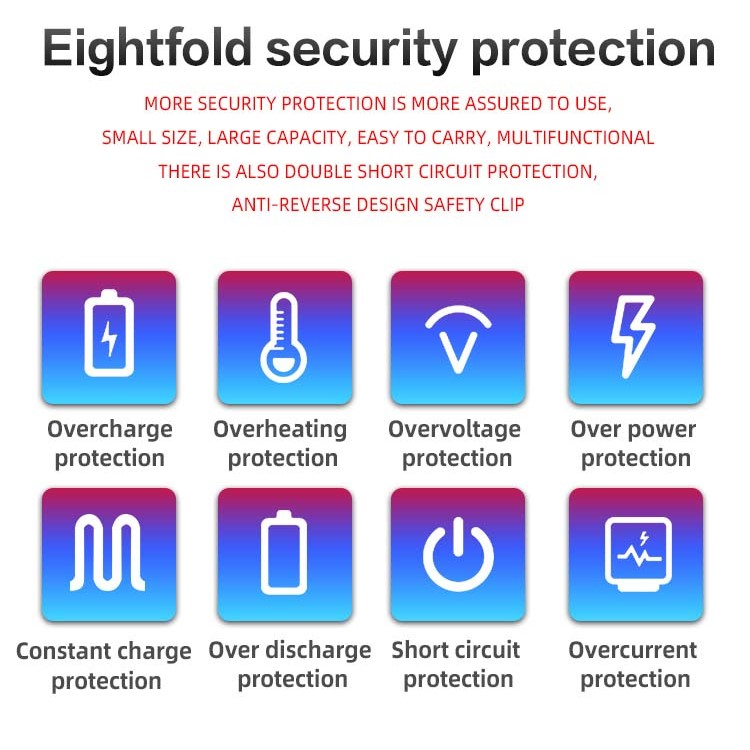 Proteksi Ekstra Tahan Cuasa Power bank sekaligus jump starter ini telah dilengkapi dengan berbagai proteksi untuk keamanan Anda dan perangkat yang disambungkan. Mulai dari proteksi arus pendek, suhu, tegangan konstan, hingga medan magnet. Sangat aman untuk digunakan di mana pun Anda berada.