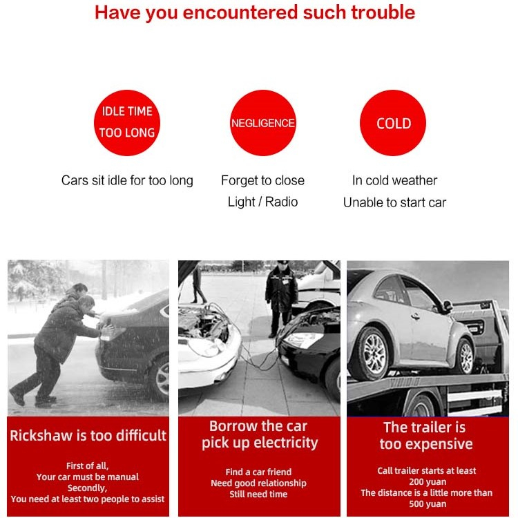 Jump Starter Atasi Mobil Mogok Hilangkan rasa khawatir akan mobil yang mati tiba-tiba di tengah perjalanan. Power bank yang telah dilengkapi kabel jumper aki ini dapat menjadi jump starter mobil Anda. Jump starter ini cocok untuk mobil bertegangan 12 V.