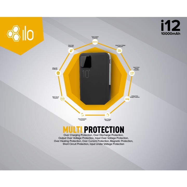 Multi Protection Lebih aman menggunakan ILO i12 10000mAh yang memiliki fitur multi protection yang akan melindungi gandget Anda dari berbagai macam bahaya.