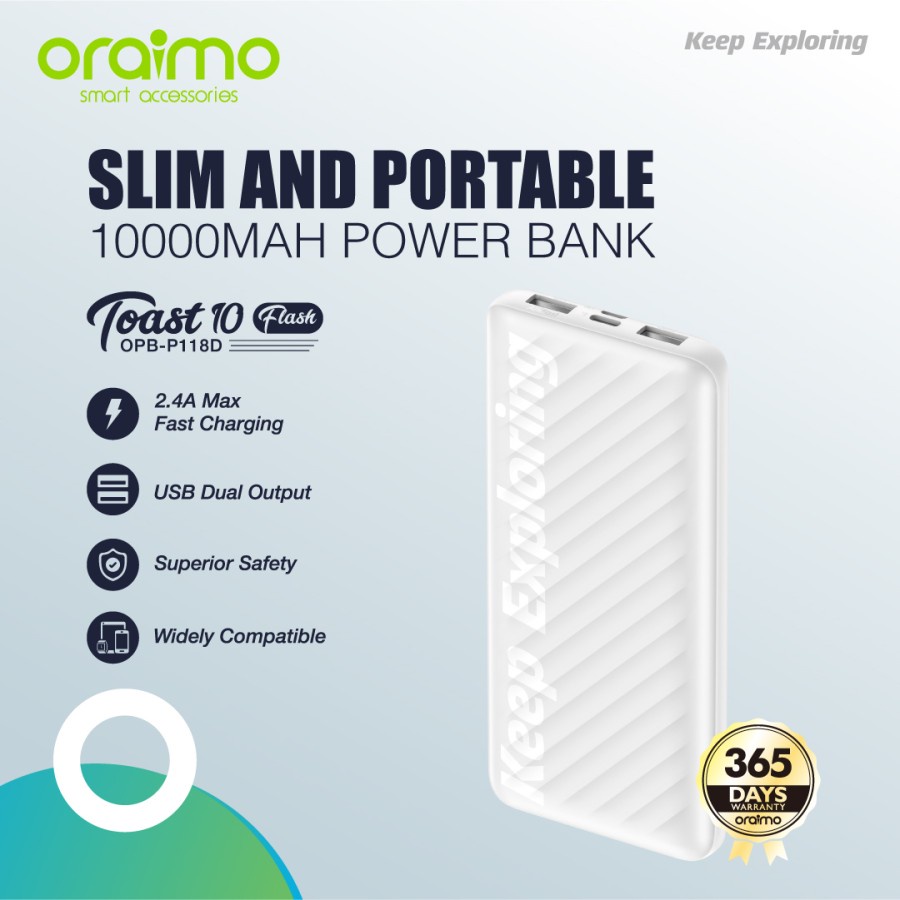 Detail POWER BANK ORAIMO 10.000MAH FAST CHARGING OPB-P118D
