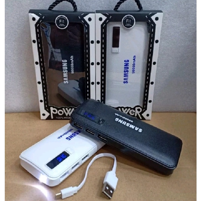 Power Bank Samsung Digital Leather 98000mAh 2 USB LED SENTER Micro USB for all smart phone