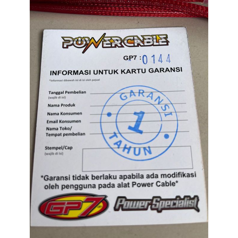 Manfaat Power Cable GP7 1.Perpindahan Gigi lebih harus dan tanpa Jeda 2.Tenaga motor lebih merata dari putaran bawah keatas 3.Akselerasi lebih bertenaga dan tarikan lebih Responsif 4.Power motor lebih Optimal dan nafas lebih panjang 5.Memperpanjang Umur AKI dan lebih Awet 6.BBM lebih irit 7.Semua Komponen lebih Awet dan bekerja lebih Maksimal