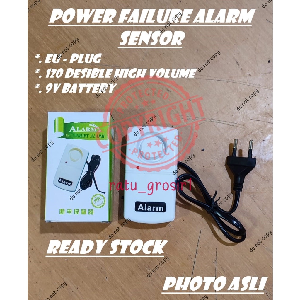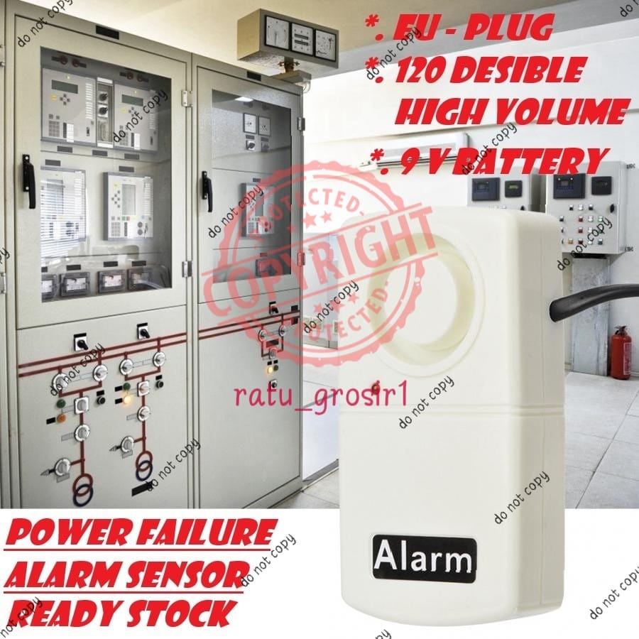 FITUR : - Akan berbunyi sangat keras saat listik padam / mati - Alarm akan mati saat listrik kembali menyala - Cocok digunakan untuk : - Kolam ikan untuk menjaga pompa tetap menyala - Mesin Pabrik - Dapur - dll