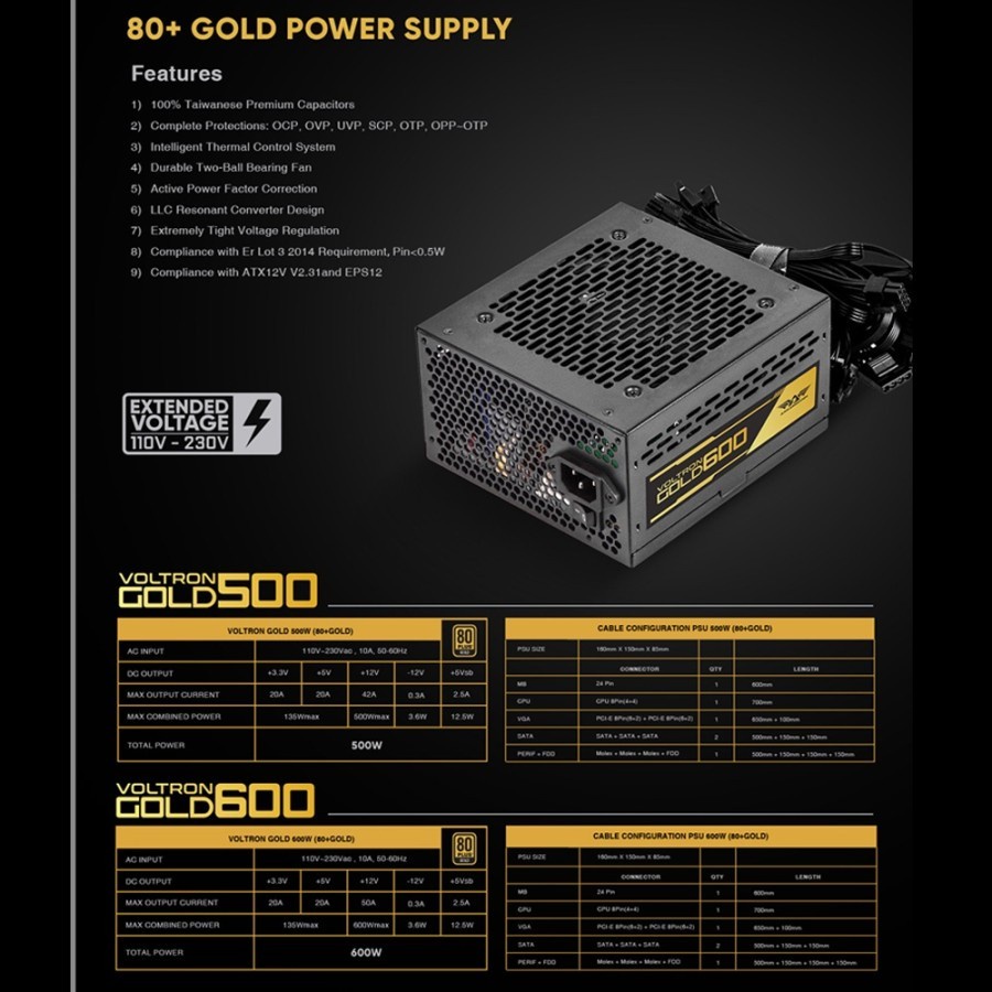 Power Supply Armaggeddon Voltron Gold 500 PSU 80+ Gold Certified