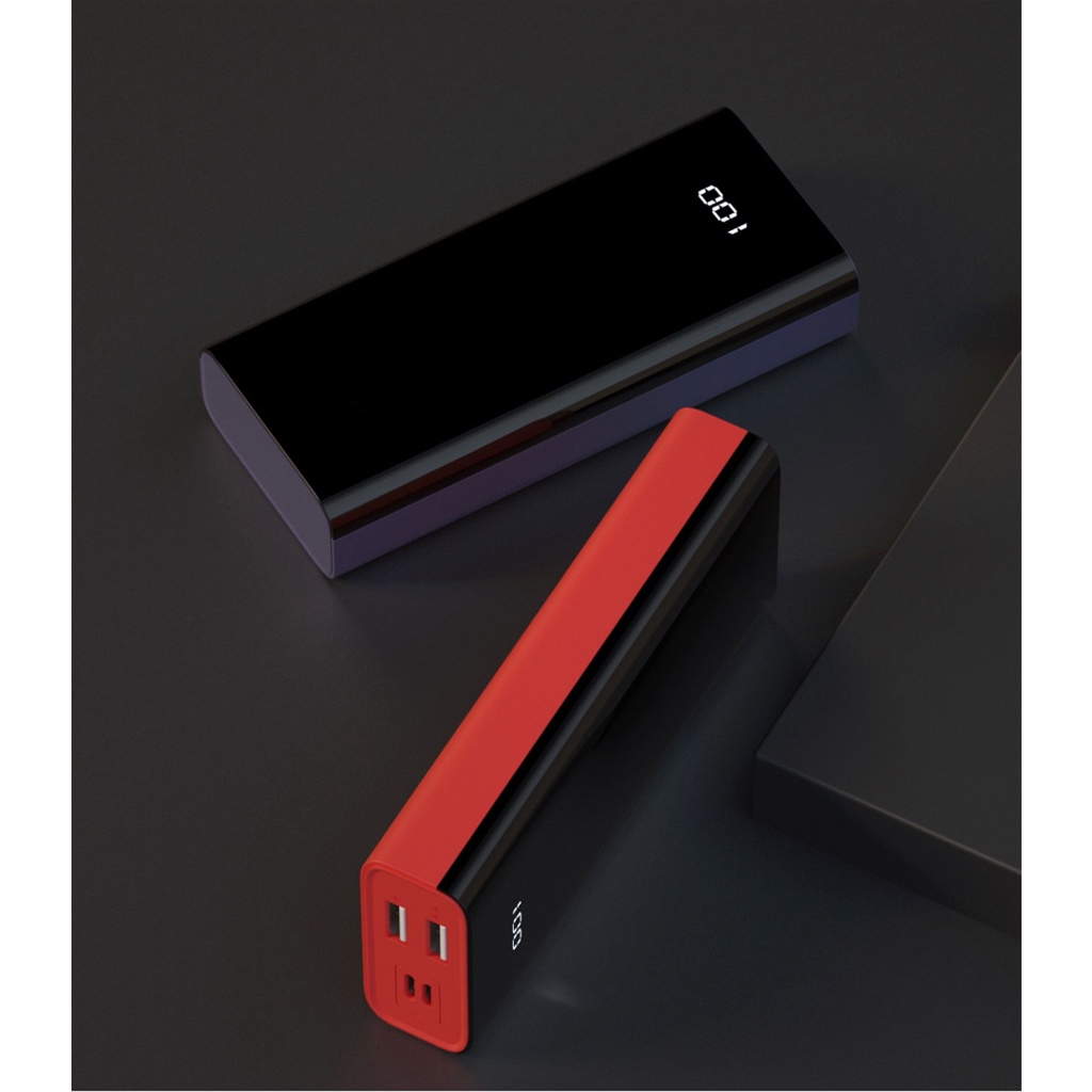 Specification: Power supply capacity: 20000 mA Color: Black, Red Battery type: polymer lithium ion battery Light : LED ( Hold Button ) Input: DC 5V 2.0A Micro USB Output : DC 5V 2.0A USB Port Max 3A SUPPORT(Micro USB / iPhone / Type-C/USB)charge different devices. Material:ABS and PC