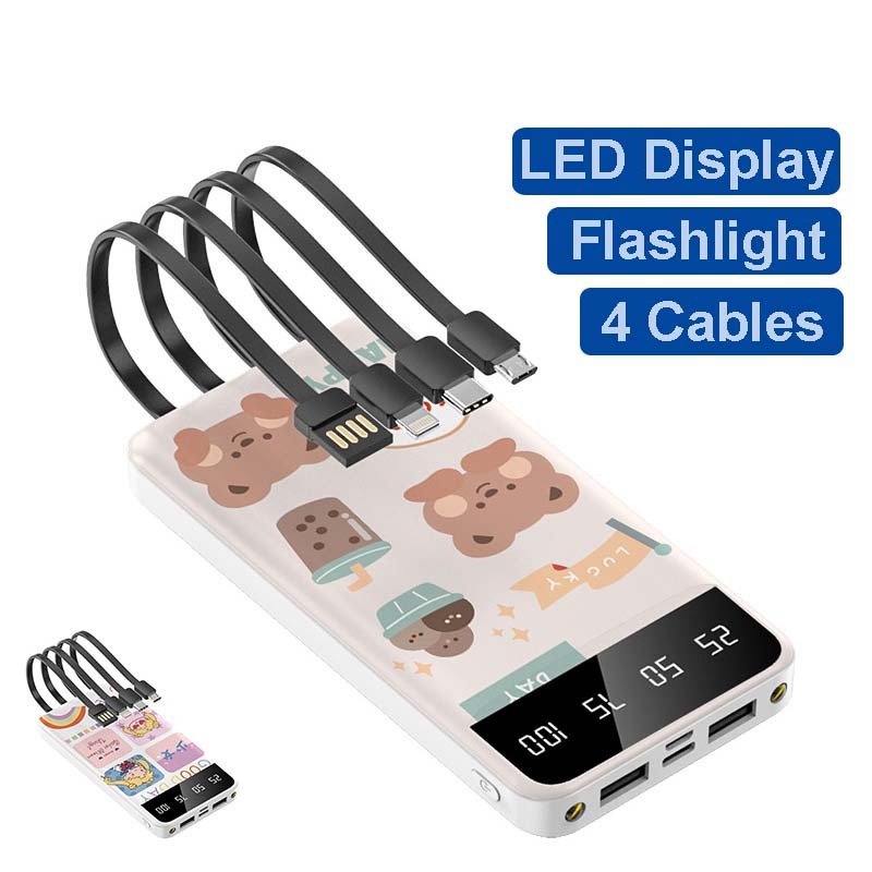 【Details】: ❀5 IN 1❀ Built-in Micro-USB Cable, Type-C Cable, iPhone Cable, USB Cable, totally four cables for all mobile phones directly. You do not need take charging cable.Also built-in USB Port input Port for charging power bank.
