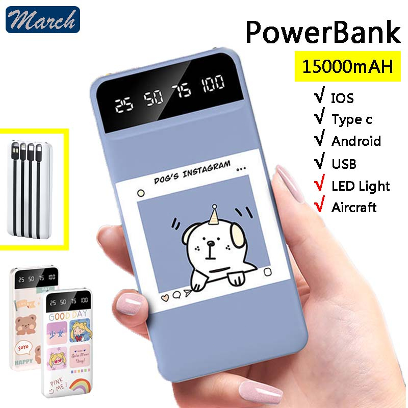 Handphone & Aksesoris > Powerbank & Baterai > Powerbank > PowerBank Mini 15000mAH Power Bank 4 Kabel Power. Bank XIAOMI Powet Bank TYPE C Powerbeng IOS MICRO Pawerbank ANDROID Own Line Fast Charging Minipowerbank IPHONE 11/12/13/14 PRO MAX SUMSUNG VIVO OPPO HUAWEI Pawer Bank Murah mini Bisa Dibawa Naik Pesawat