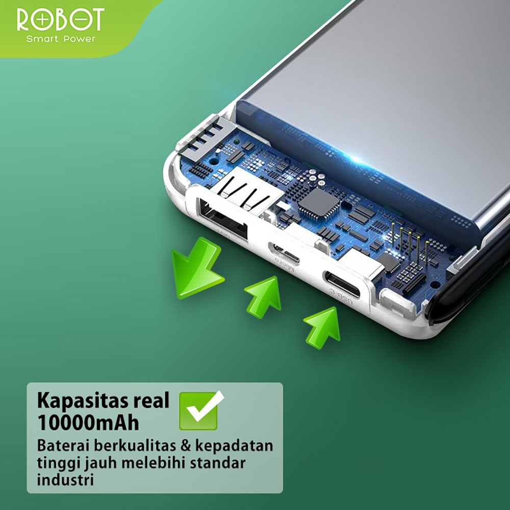 Detail POWERBANK ROBOT 10000 MAH POWERBANK ROBOT RT180 POWER BANK ROBOT DUAL INPUT TYPE C & MICRO LIGHTNING USB RT180 POWERBANK 10000 mAh OUTPUT UNIVERSAL DUAL INPUT