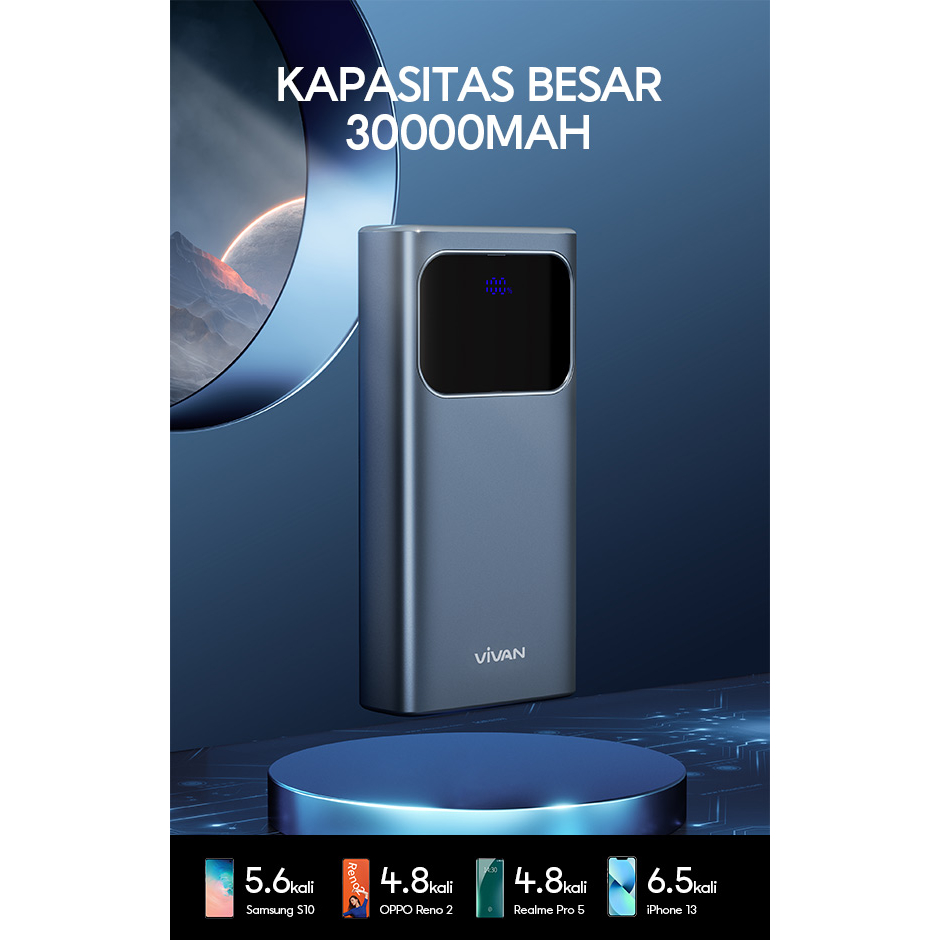 VIVAN Power Bank VPB-C30 PowerBank 30000mAh 3 Output Fast Charging 22.5W PD QC 3.0 Support VOOC Garansi Original Resmi