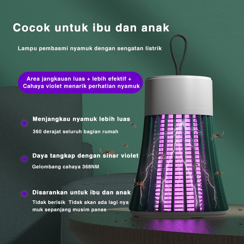 Scan 360 derajat ke segala arah—Menarik nyamuk di segala area,Menyebar ke setiap sudut untuk menarik perhatian nyamuk Menarik nyamuk secara bionik—Hanya menarik perhatian nyamuk,Sumber panas bionic manusia 39,5 、Dengan napas CO²yang menarik perhatian nyamuk Dengan cover penutup yang aman—Hanya menyengat nyamuk, Tidak akan menyengat manusia Dengan 23 loops jaringan listrik—Dengan 23 cincin jaringan listrik tegangan tinggi,Secara langsung melepaskan 1000V voltase bila nyamuk mendekat,Tidak mudah untuk lolos Cocok untuk ibu dan anak—Tidak lagi membutuhkan cairan kimia yang berbahaya untuk membasmi nyamuk,Pembasmi nyamuk yang didesain untuk ibu, anak dan keluarga Tidak berisik—Nikmati suasana senyap tanpa nyamuk,Selamat tinggal pada gigitan nyamuk Cover penutup yang aman—Dengan bahan jala terbaik untuk perlindungan,Mencegah jari untuk menyentuh jaringan listrik secara tidak sengaja Gelombang cahaya 368NM—Menginduksi perhatian nyamuk sepanjang 360NM sampai 420NM,Simulasi dengan napas tubuh manusia untuk menarik nyamuk;Daya tangkap dengan sinar violet,Membunuh nyamuk setiap saat dan dimanapun