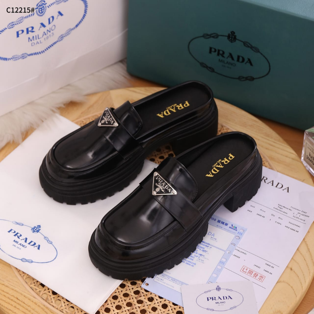 PR Chocolate Brushed Leather Loafers Women Mules C12215#