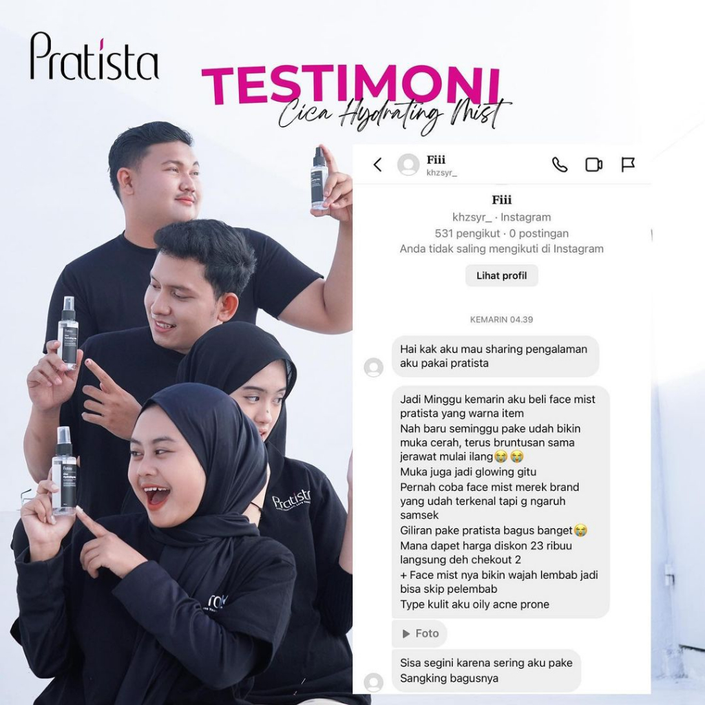 Kita berharap antara Cica Hydrating Mist dan Calming Spray bisa beriringan dan saling melengkapi ya. Klo kamu cari face mist yang bener-bener ngasih efek hidrasi/lembap dan calming bisa pakai Cica, tapi klo mau face mist yang bisa juga bantu redain bruntusan/ jerawat bisa coba Calming Spray nya ❤️