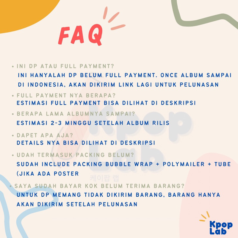 Est. Full Price Photobook: 295 - 315K Digipack: 175 - 195K SMini: 175 - 195K Sudah termasuk pengiriman KR-INA dan Pajak (Tax) - *Harga bisa berubah (naik/turun) tergantung berat -barang ETA. EMS 3-5 minggu setelah shipped out (menunggu antrian pesawat dan antri beacukai)