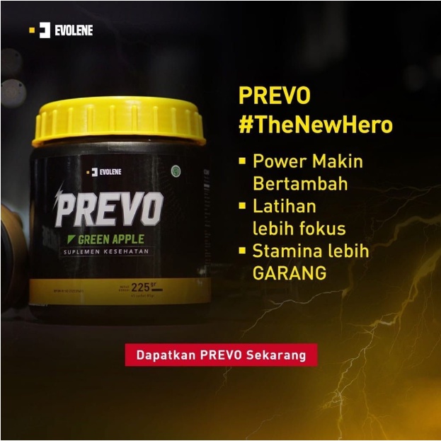 Evolene PREVO Pre-workout Halal pertama di Indonesia. Rasakan ledakan tenaga untuk hasil latihan maksimal!