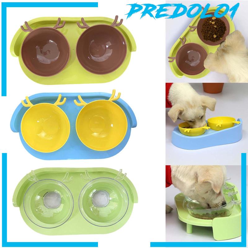 [Predolo1] Mangkuk Kucing Ganda Untuk Makanan Dan Air Ditinggikan Wadah Makanan Miring Mangkuk Anjing