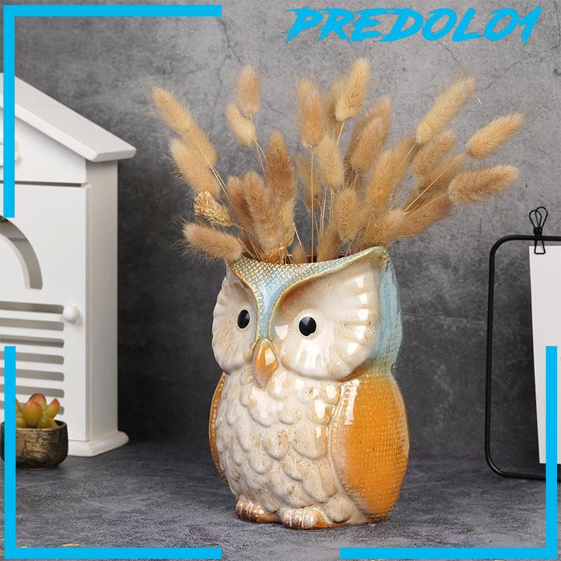 Detail [Predolo1] Pot Tanaman Burung Hantu Rangkaian Bunga Kartun Indoor Patung Owl Vas Pot Bunga