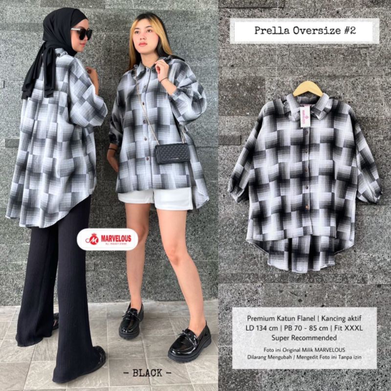 Detail PRELLA OVERSIZE #2 BY MARVELOUS / BLOUSE FLANEL WANITA MUSLIMAH / Blouse jumbo bahan flanel adem premium kekinian