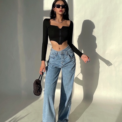 [Premium] Atasan Korean Unique Design Zip Up Hanky Hem Top 7062 S/M/L