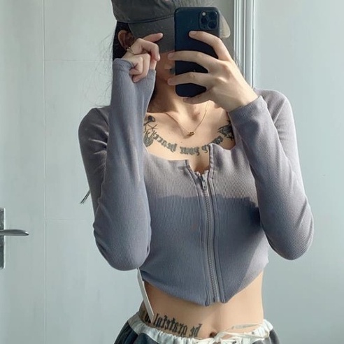 Detail [Premium] Atasan Korean Unique Design Zip Up Hanky Hem Top 7062 S/M/L