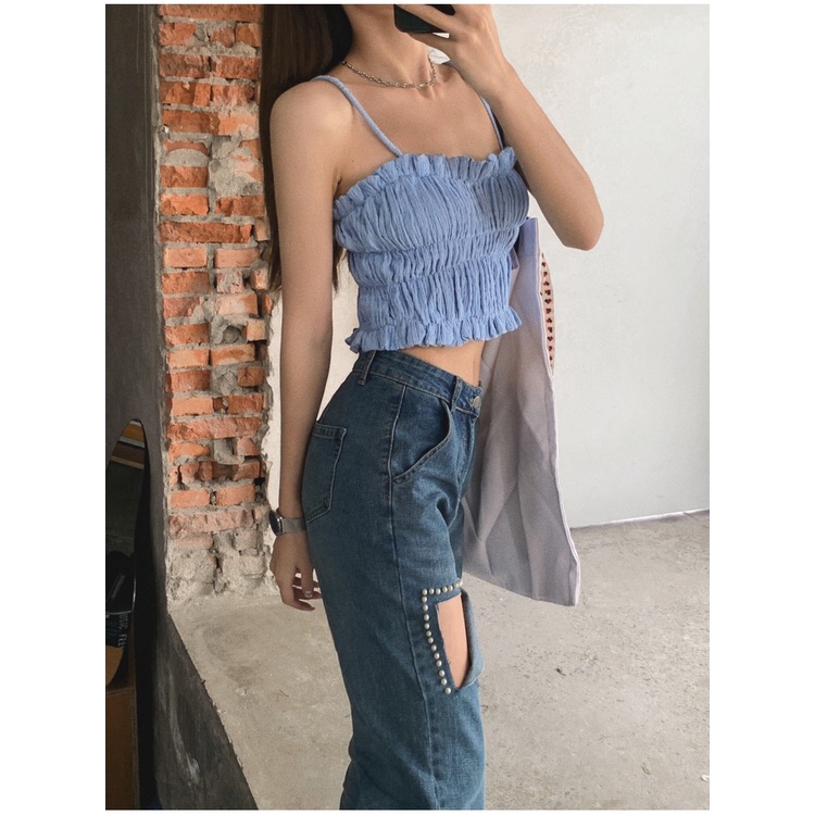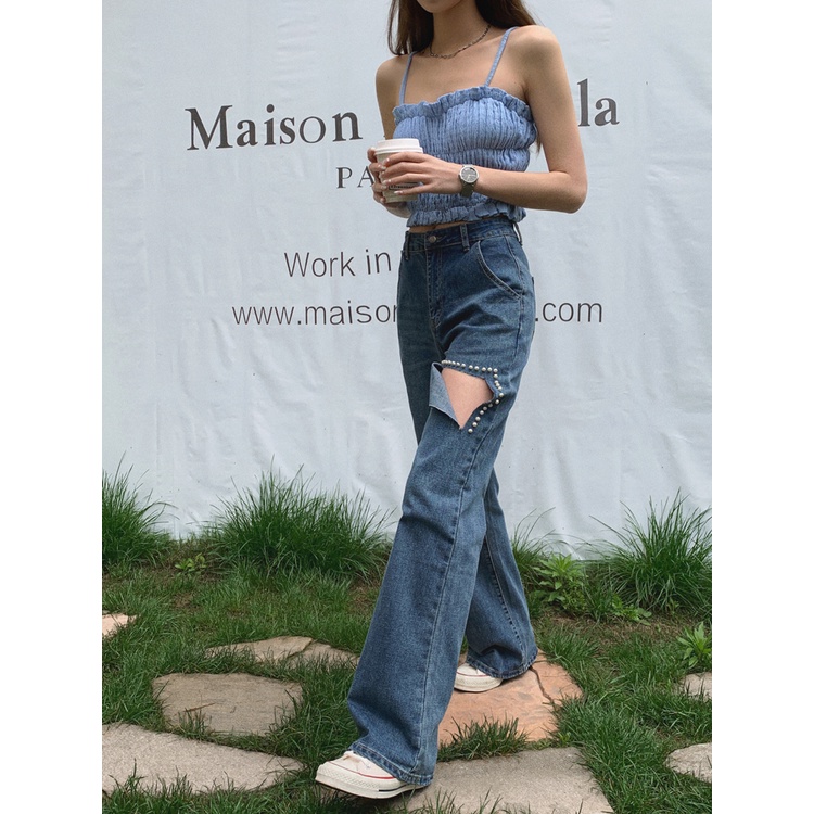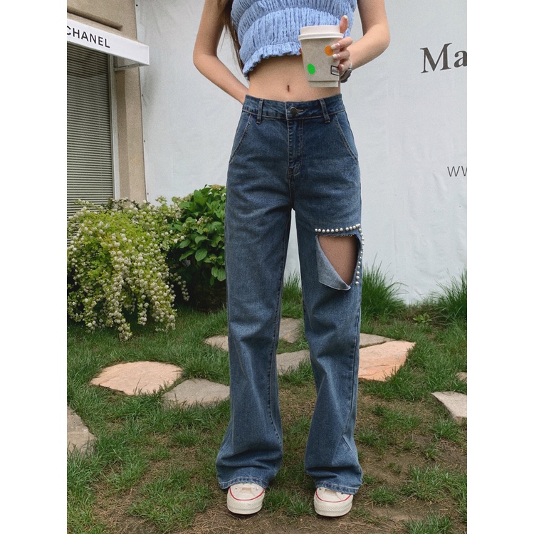 Detail [Premium]Celana Jeans Wanita Sobek Korean Style Highwaist Denim Pants
