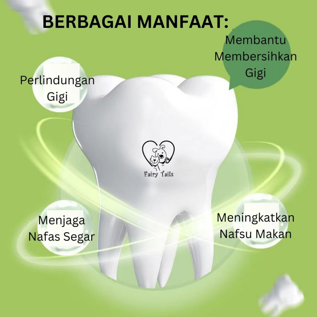 Terbuat dari bahan pilihan berkualitas dan sudah melalui proses QC yang ketat. Manfaat: - Menjaga kesehatan gigi dan untuk perlindungan gigi - Agar anabul lebih relax dan senang - Anabul lebih aktif bergerak dan mencegah obesitas - Menambah nafsu makan - Mencegah muntah akibat bola bulu / hairball - Baik untuk kesehatan pencernaan dan bulu yang cantik