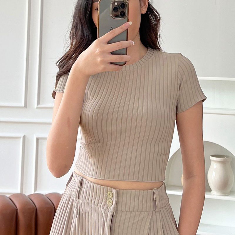 Detail Premium Kaos Rib Knit Crop Top Kaos Wanita Slimfit