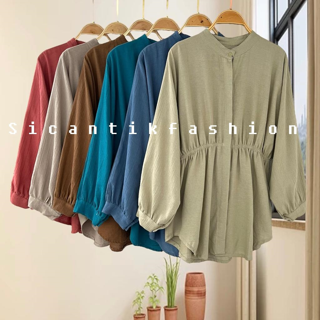 Alya Shirt Premium Linen Crinkle / Blouse Semi Tunik Linen Crinkle Premium /Kemeja Wanita Kerut Depan