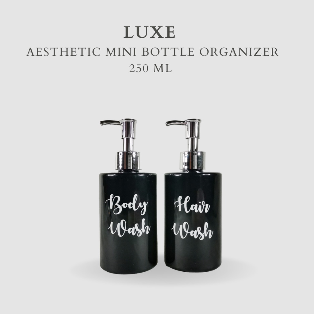 PREMIUM LUXE Botol MINI HITAM Label Putih 250 ml Aesthetic Bottle Refill | Botol refill sabun /botol refill sabun/ botol isi ulang/botol sabun refill/botol sabun/botol pump/botol anak/bathroom organizer/bathroom amenities
