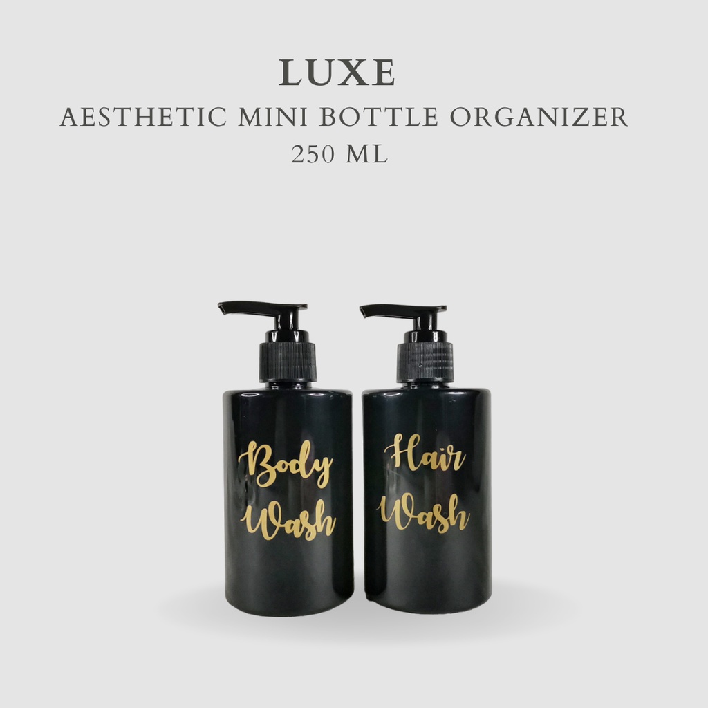 PREMIUM LUXE Botol MINI HITAM Label Gold 250 ml Aesthetic Bottle Refill | Botol refill sabun /botol refill sabun/ botol isi ulang/botol sabun refill/botol sabun/botol pump/botol anak/bathroom organizer/bathroom amenities