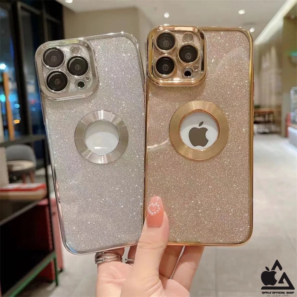 Handphone & Aksesoris > Casing & Skin > Casing & Skin Handphone > PREMIUM SOFT CHROME GLITER LUBANG LOGO iPhone 11 PRO MAX 12 PRO MAX 7+ XR 8+ XS MAX LENS LENSA GLASS CAMERA PROTECTOR HOLE APPLE Softcase Soft Case Silikon Silicone Jelly Hardcase