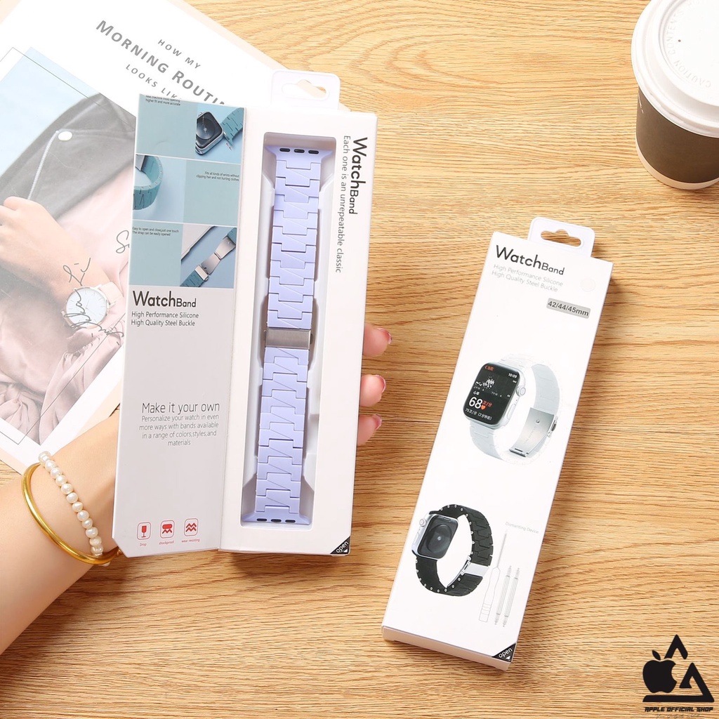 “ Strap Band Apple Watch LIQUID Rubber ANTI NODA Model Rantai + Pack Box Mewah “