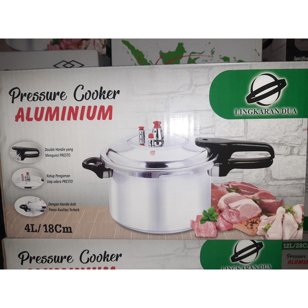 LINGKARAN DUA Panci Presto 12L(28cm) merupakan panci presto yang super cepat, menggunakan ring karet, aman dan nyaman digunakan.