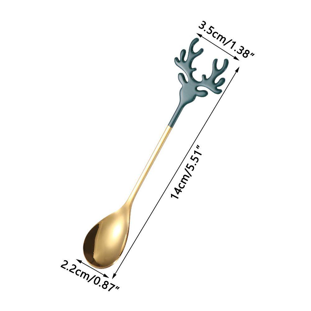 2.Perkenankan sedikit kesalahan ukuran karena pengukuran manual. Terima kasih atas pengertian Anda! Sendok Natal Sendok Kopi Xmas Antlers Sendok Teh Mengaduk Sendok Rusa Natal Kepala Stainless Steel Es Krim Makanan Penutup Peralatan Makan dengan Kotak Hadiah