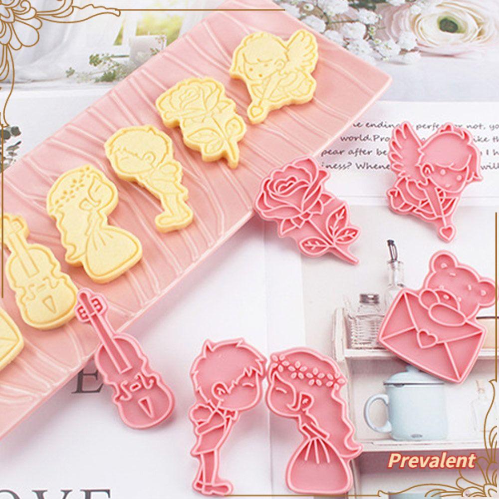 Preva 6pcs/set Hari Valentine Makanan Fondant Kue Alat Cetakan Kue Amplop Plastik Bunga Mawar Cookie Cutter