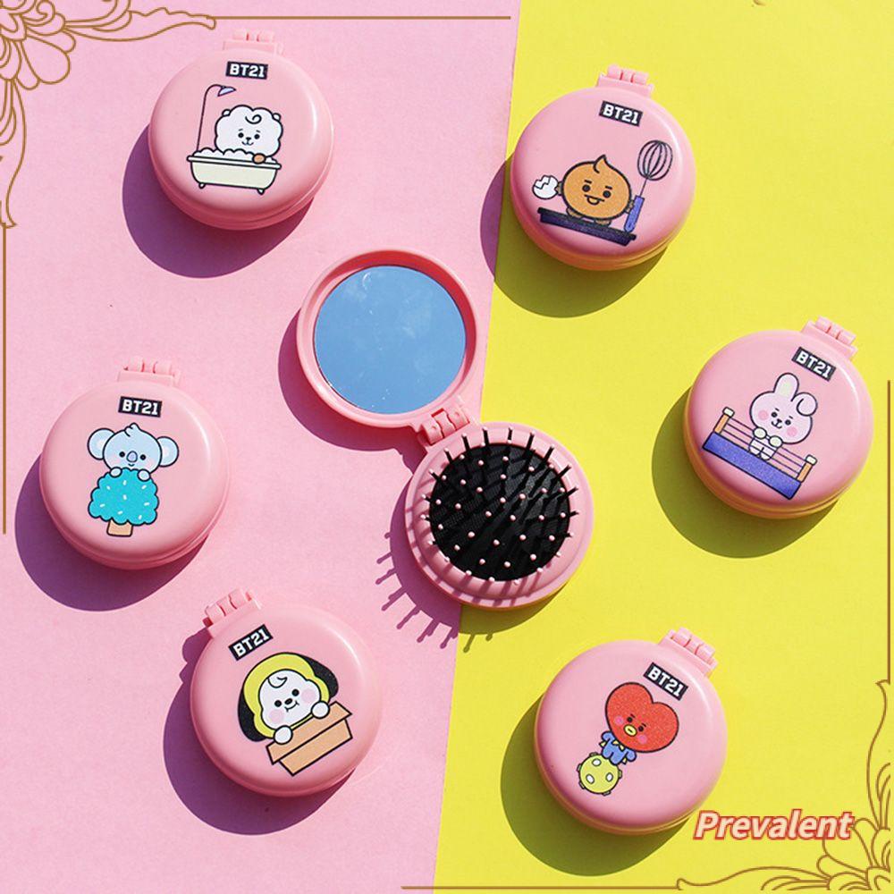 1x Sisir Cermin Rias BT21 Bt21 Sisir BTS Riasan Cermin Aksesoris Kosmetik Produk Periferal Desain Portabel untuk Anak Perempuan Hadiah Mahasiswa Gambar Kartun Bahan ABS Kreatif