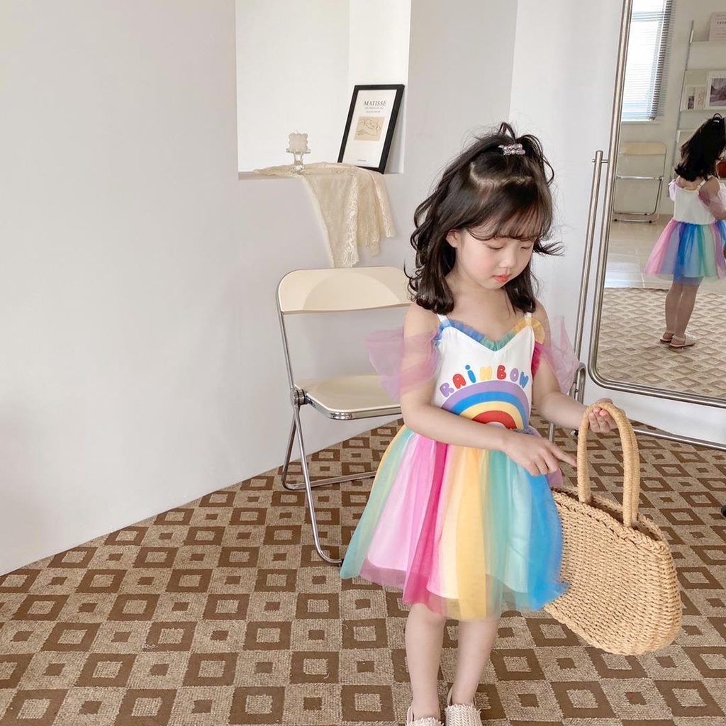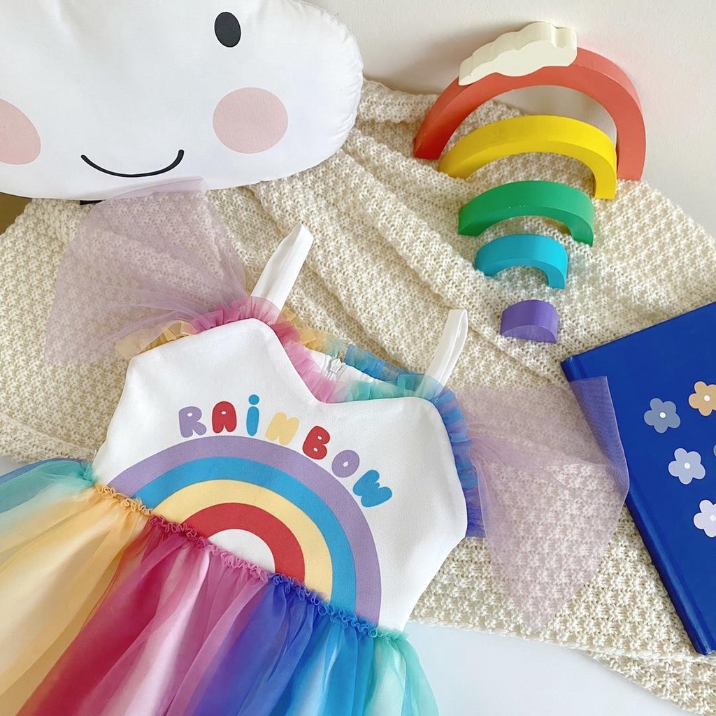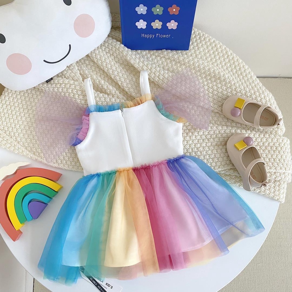 Detail [PRINCESS KESLI] 1-9Tahun Dress Pesta Anak Perempuan Rainbow Gaun Anak Perempuan/Gaun Putri/Gaun Jala Pelangi Bayi Perempuan