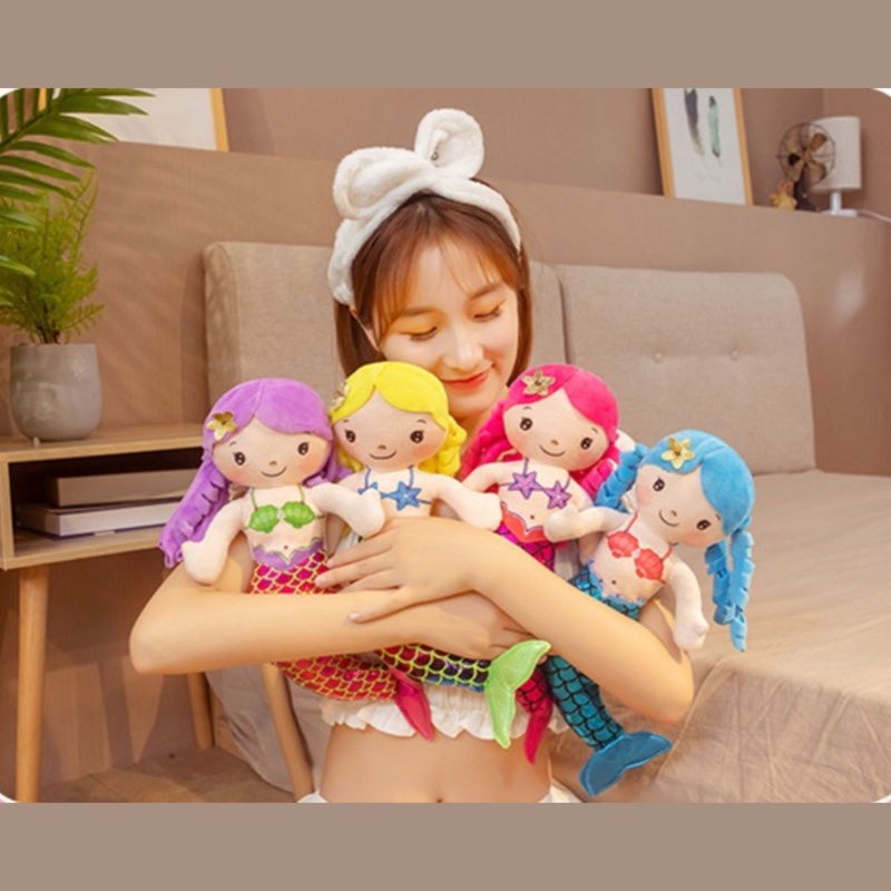 Fitur: Fitur: _BAR_ Kategori Boneka mewah Gaya Putri Duyung Kapas PP Bahan Pengisi: Kapas PP Warna Biru Kuning Merah Ungu Tinggi: 30cm/11.8in, 50cm/19.7inin, 50cm/19.7in