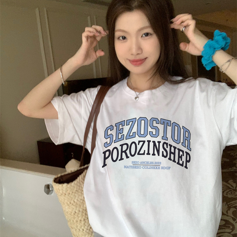 Detail Print T-shirt Kaos Lengan Pendek Retro English Design Oversize Atasan Wanita Korean Style