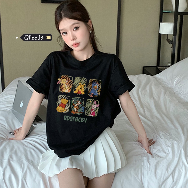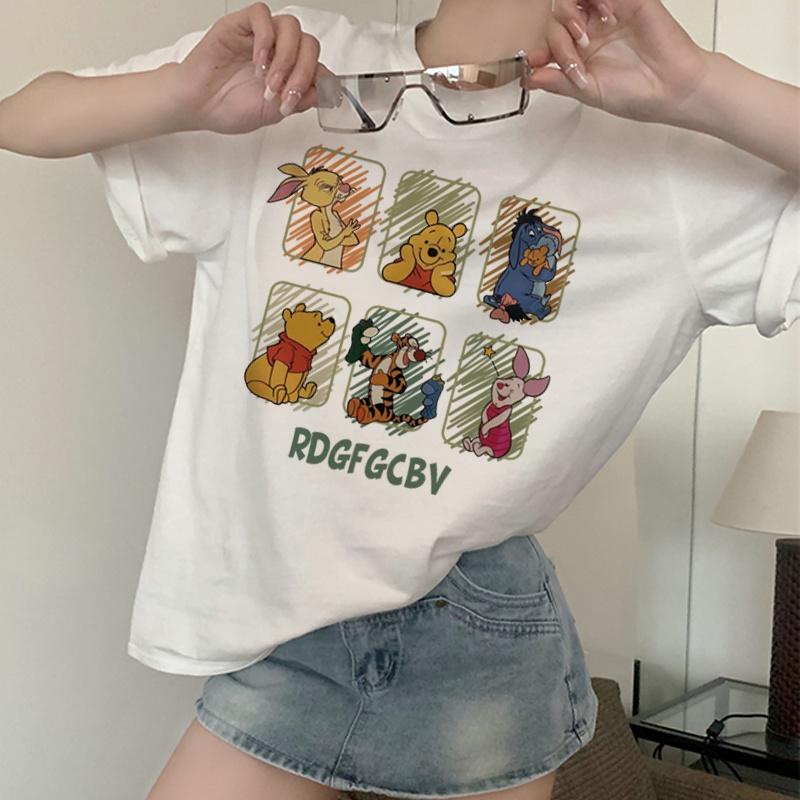 Detail Print T-shirt Kaos Lengan Pendek Disney Bear Baju Wanita Oversize Korean Style