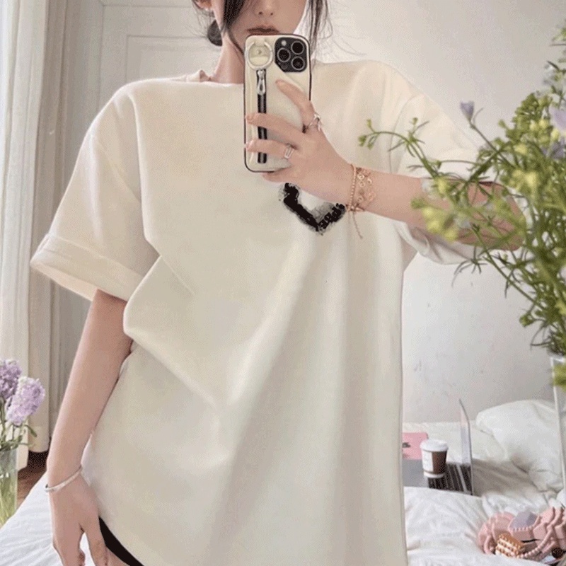 Detail Print T-shirt Kaos Lengan Pendek Retro Love Ink Baju Wanita Oversize Korean Style/Kaos lengan panjang tipis