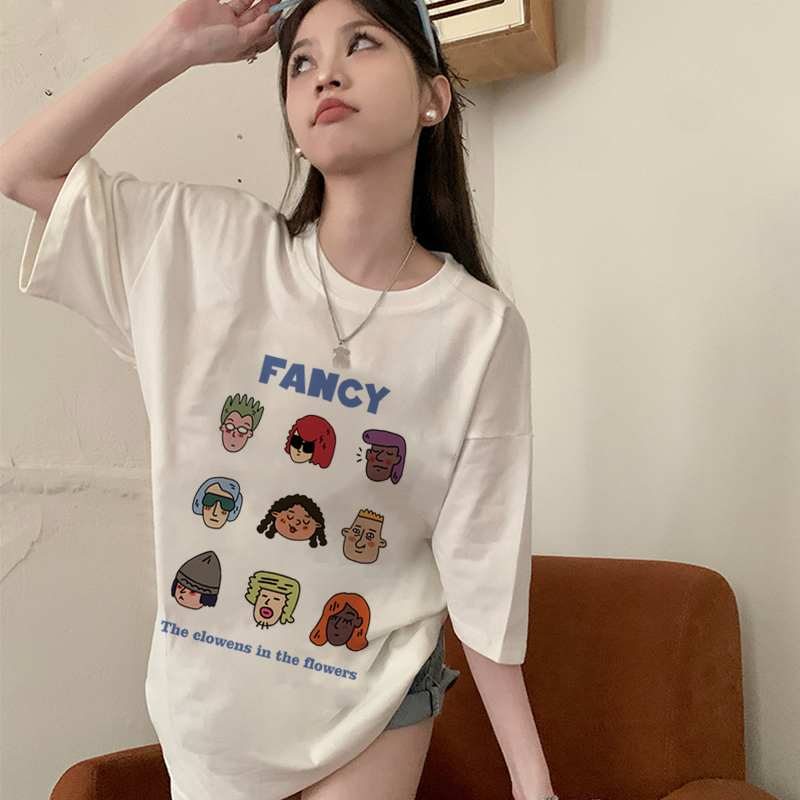 Detail Print T-shirt Kaos Lengan Pendek Retro Funny Boy Baju Wanita Oversize Korean Style